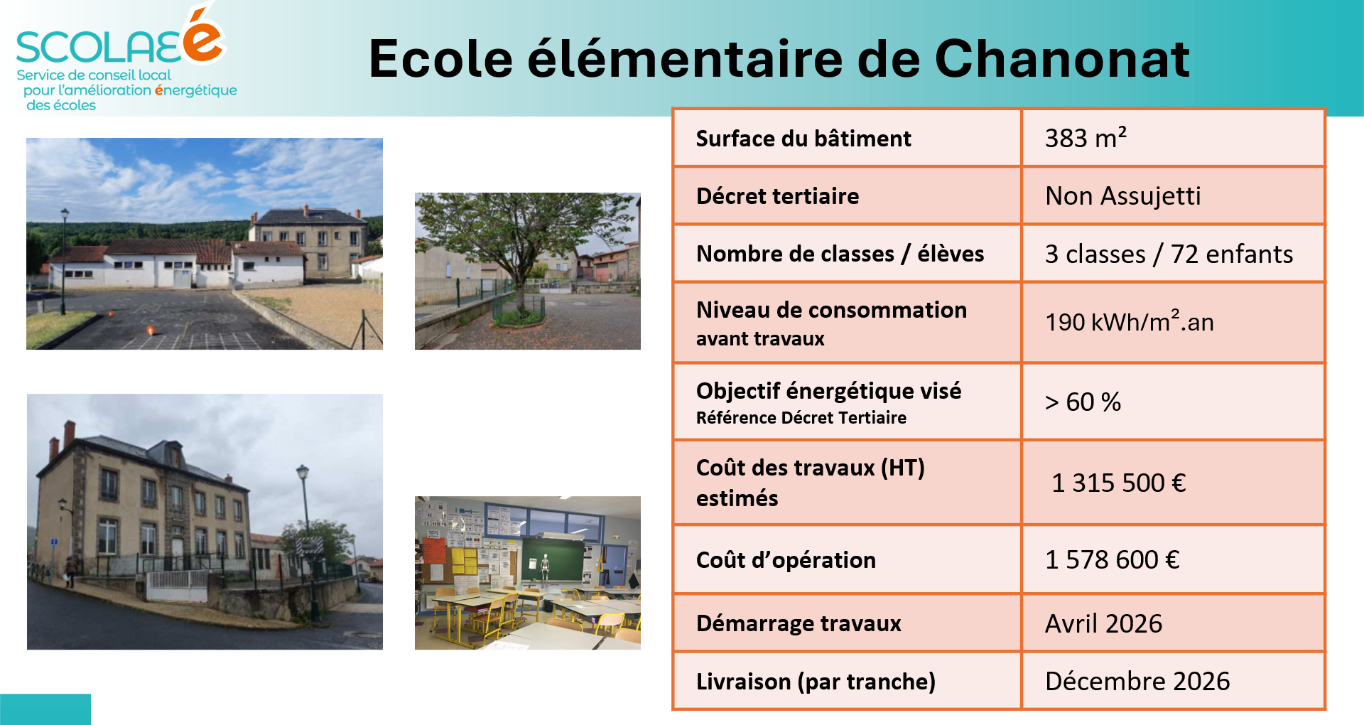 Le dispositif SCOLAEé, piloté conjointement par le Département et l’Aduhme a pour objectif d’accompagner des communes puydômoises dans la rénovation énergétique ambitieuse de leur école voire groupe scolaire. Cette démarche est financée par la FNCCR dans le cadre de l’appel à projets Merisier. Le principe est de définir et mettre en place une vraie méthodologie de projets, en vue de la répliquer sur les futurs projets de rénovation.