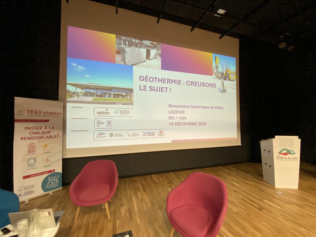 Un grand merci à TE63, l’ADEME, la communauté de communes Entre Dore et Allier, Auvergne Forage, Celsius Energy ainsi qu’à l’ensemble des intervenants pour la qualité des échanges et des présentations.
