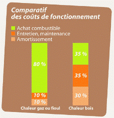 A long terme, le chauffage au bois s’avère être plus compétitif que les énergies fossiles. Le coût de l’énergie bois présente une meilleure stabilité dans le temps.