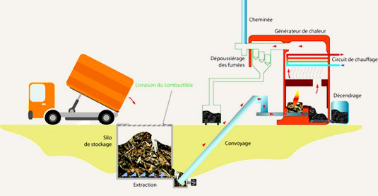 Le stockage du combustible dans un silo tampon permet une autonomie de quelques jours à plusieurs semaines. Le convoyage du combustible jusqu’à la chaudière et le système d’extraction des cendres sont entièrement automatisés.